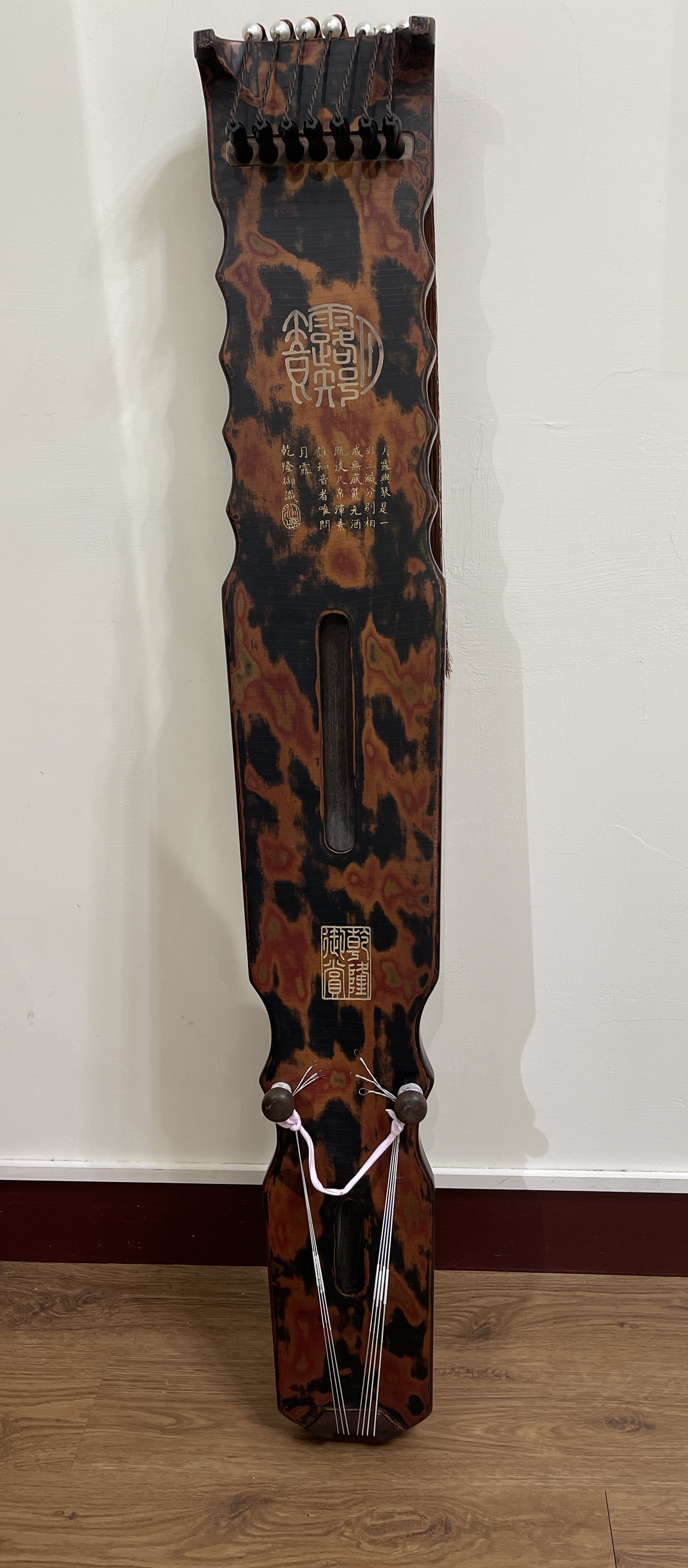 月露與琴,是一非三,滅分別相,成無底籃,元酒既淡,尺帛渾素,誰知音者,唯問月露。乾隆御識。鈐印:浴德。