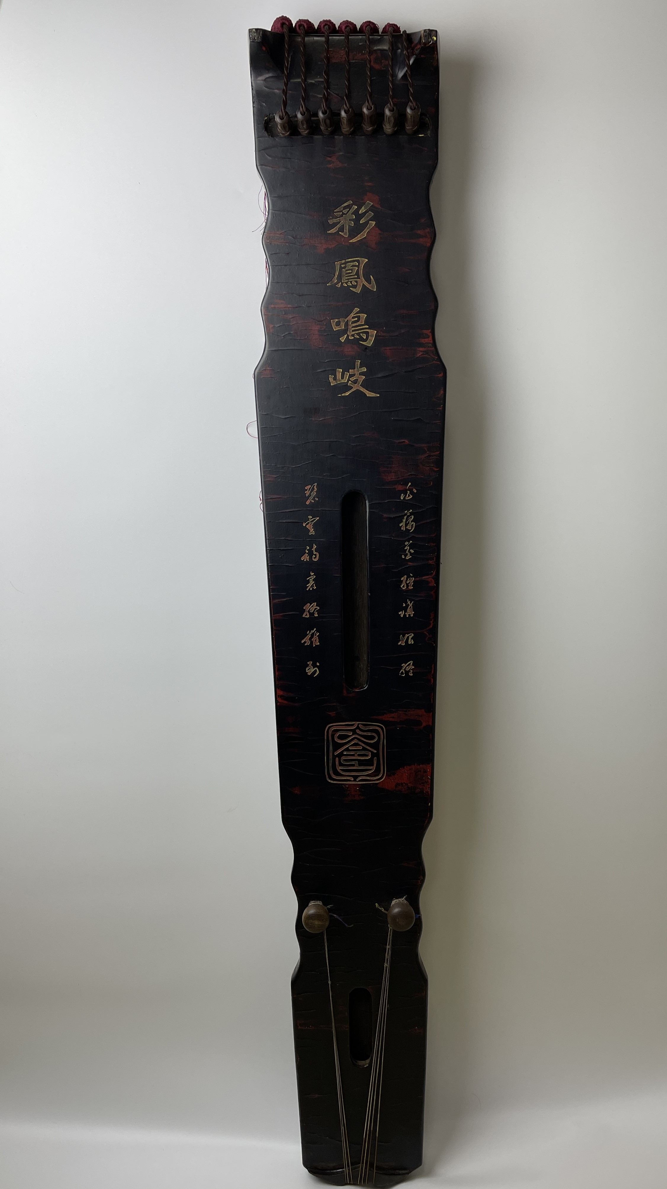 琴底刻銘七字,述琴德之旨;款識記製琴者與其地。