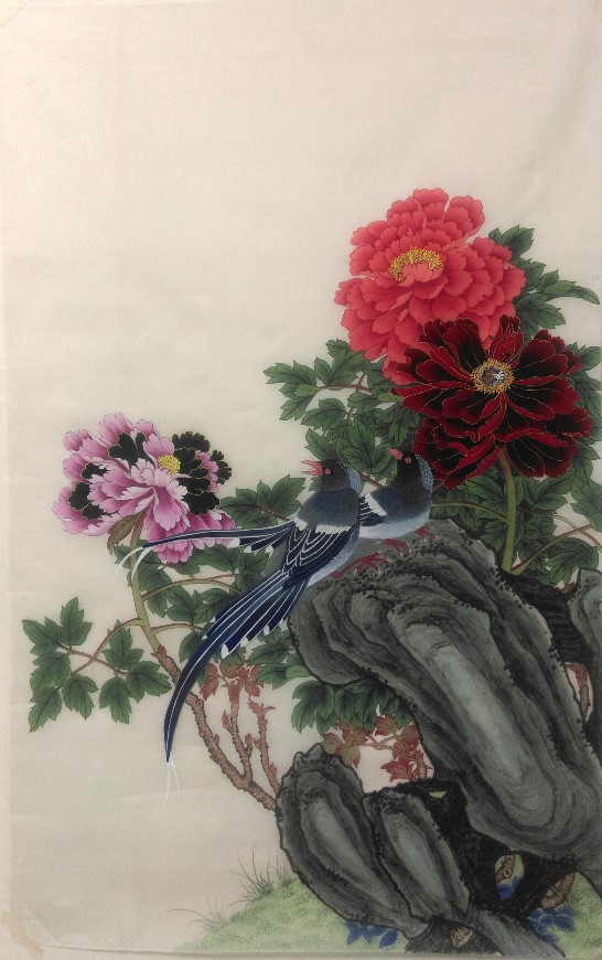 • 牡丹花與綬帶鳥